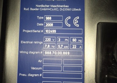 Operator Requirements: Throughput Rate: Power Consumption: Air Consumption: Water Consumption: Weight: Condition: Year Mfr: Lot Number: |